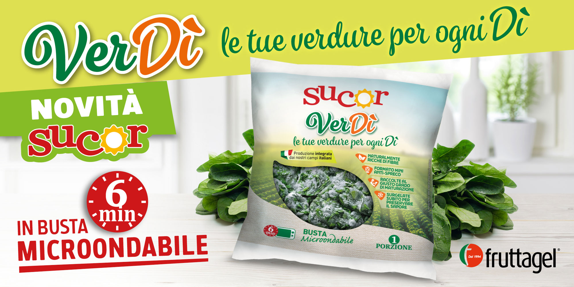 È uscita sul mercato VerDì, la nuova linea di verdure surgelate Fruttagel a marchio Sucor. Il progetto di pack design porta la firma di Pagina.